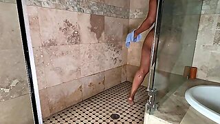υπηρέτρια, ντους, παχουλή, πλαστικό πέος